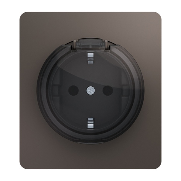 Розетка сетевая KRANZ Strong с заземлением с защитными шторками антрацит KR-78-0701-5
