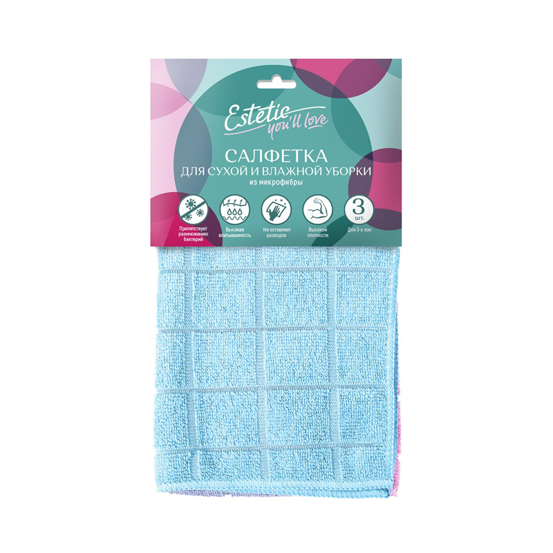 Салфетка Квадраты, микрофибра 3шт/HomeQueen/