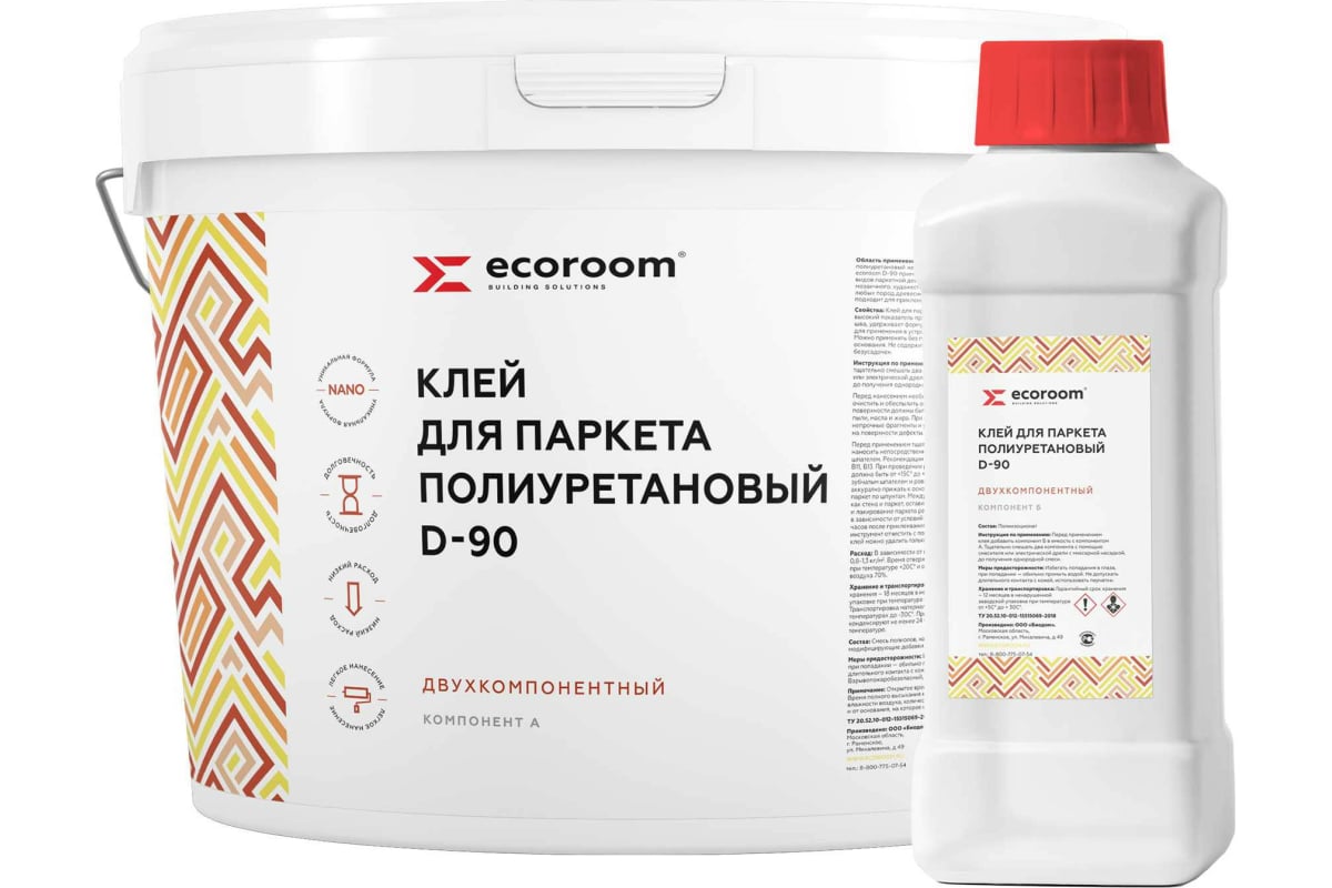 Клей ECOROOM D-90 2 К для паркета 9 кг+1 кг