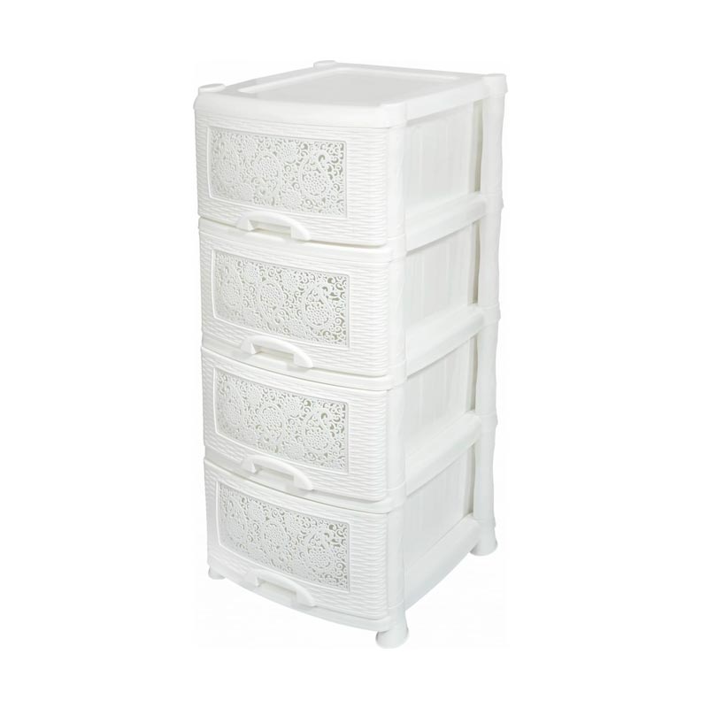 Четырехсекционный комод VIOLET Ажур белый 35426 предназначен для хранения вещей, различных мелочей, принадлежностей, игрушек, косметики, аксессуаров или продуктов питания.