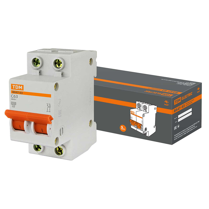Автоматический выключатель TDM ВА47-63 2Р 63 А С 4,5 кА