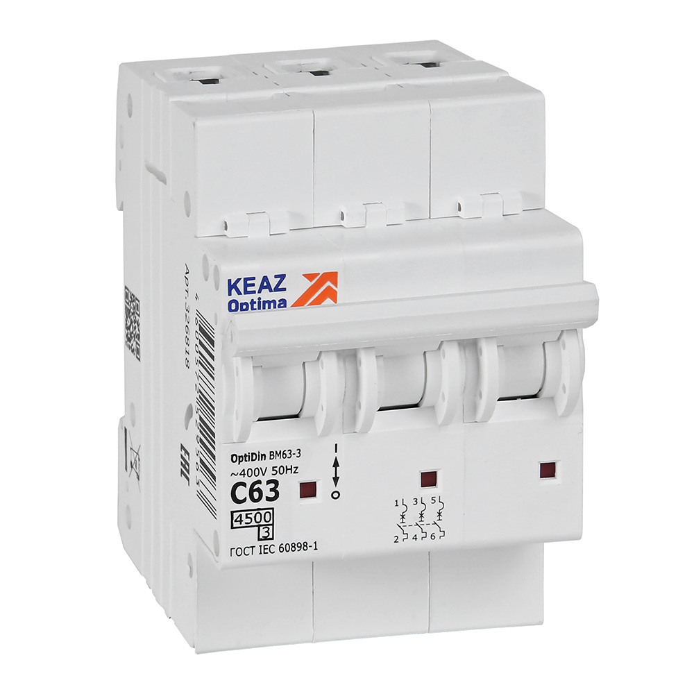 Автоматический выключатель КЭАЗ OptiDin BM63 3P 63 A C 4,5 кА 326818