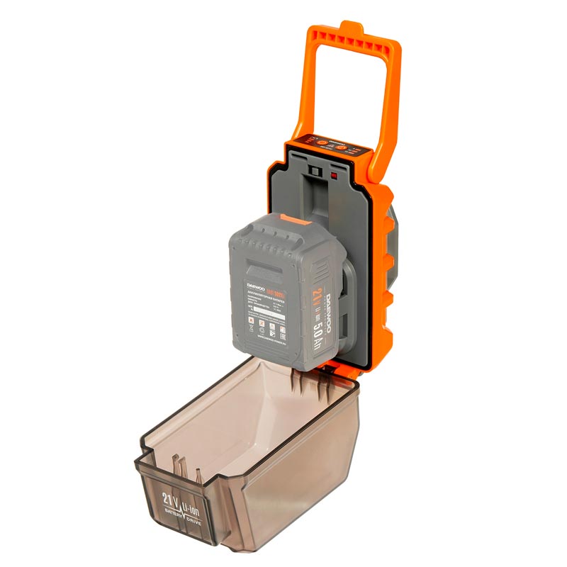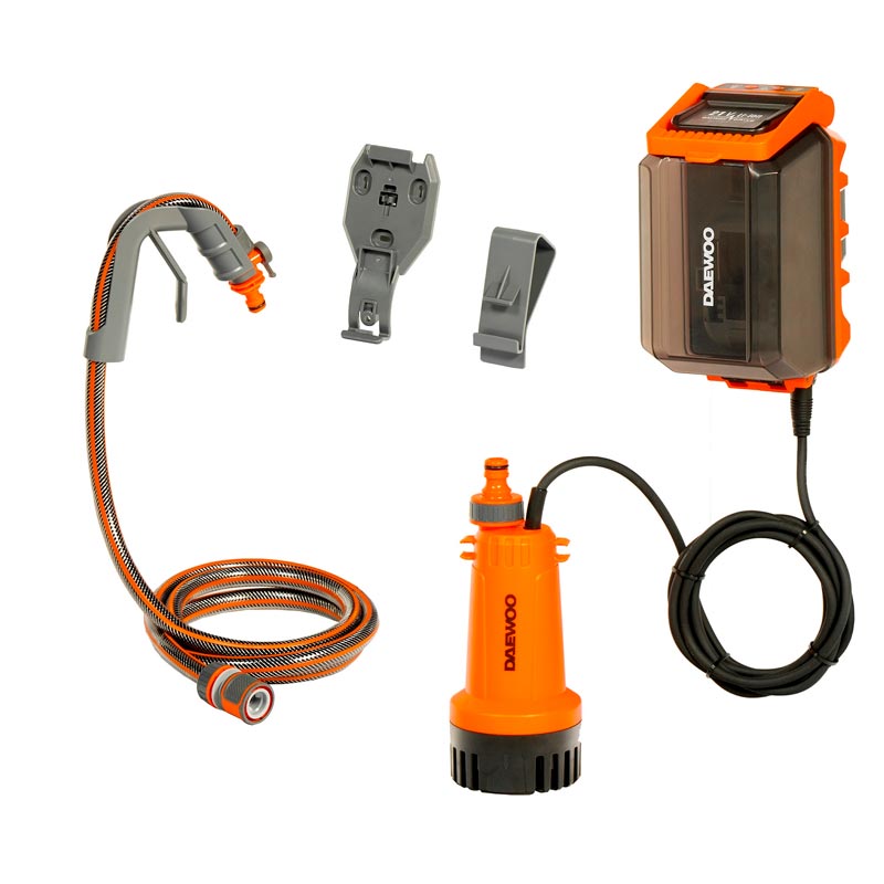 Насос DAEWOO используется для полива садового участка из бочки или другой емкости. Он отлично подойдет для перекачки воды из резервуаров с дождевой водой. Насос оснащен таймером, который позволяет установить время работы насоса — 5, 10 или 15 мин. Затем насос отключается автоматически, что позволяет сохранить заряд батареи и дополнительно защищает двигатель от сухого хода. Аккумулятор и зарядное устройство приобретаются отдельно.