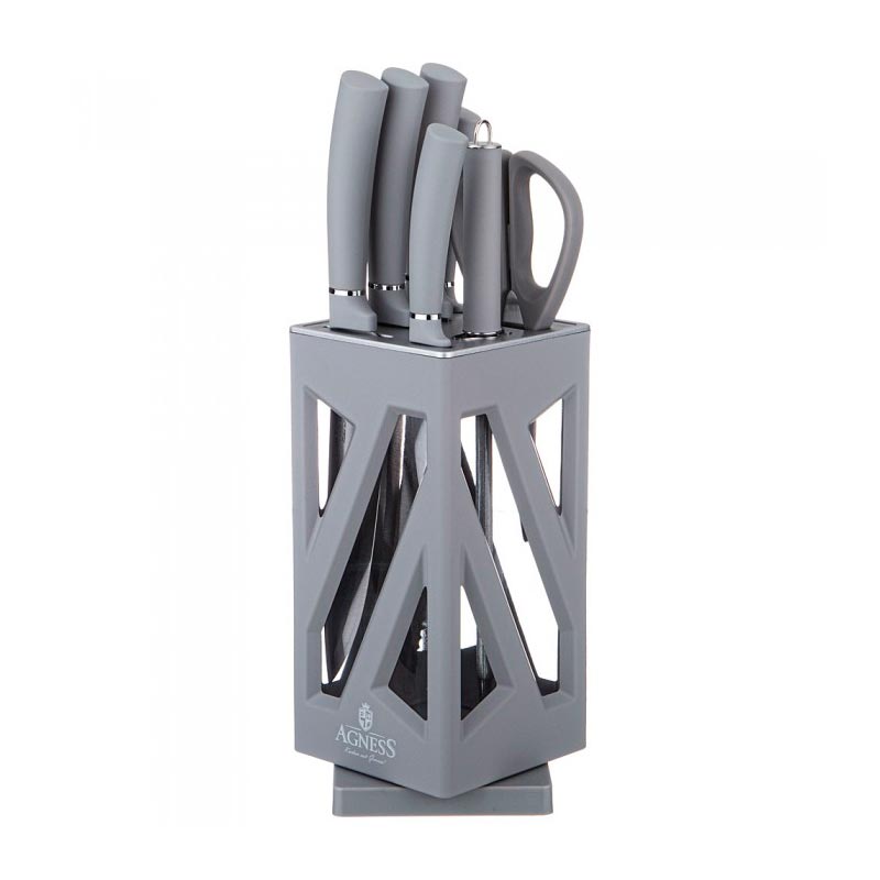 Выбирая набор ножей AGNESS - вы приобретаете комплект самых необходимых и чаще всего используемых ножей. Для экономии рабочего пространства вы легко можете сложить подставку.
