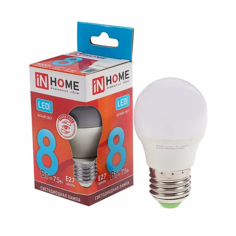 Лампа LED IN HOME 8W/E27/4000K шар 4690612020570