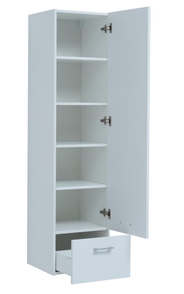 Пенал для ванной комнаты AQUANET Нота в стиле модерн с удобной организацией внутреннего пространства шкафов. Такая мебель в ванной – образец рациональной конструкции и лаконичной формы без излишнего декора. Пенал займет минимум площади ванной комнаты, в то же время с легкостью спрятав белье и полотенца от лишней влаги в выдвижном ящике, а косметические средства займут свои места на вместительных полках за распашной дверцей.