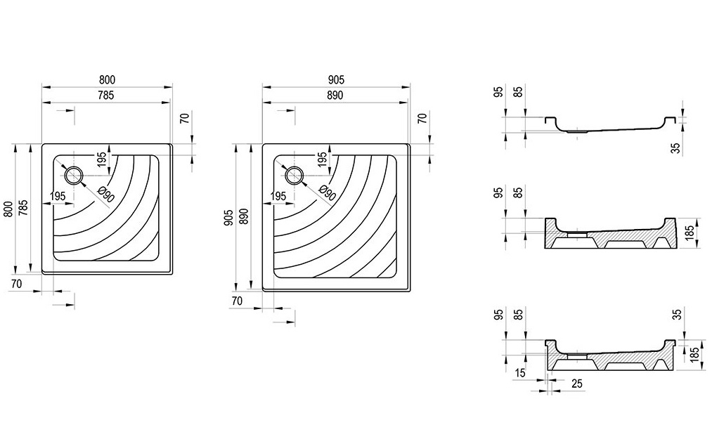 Поддон акриловый RAVAK Angela-80 LA 80*80 см