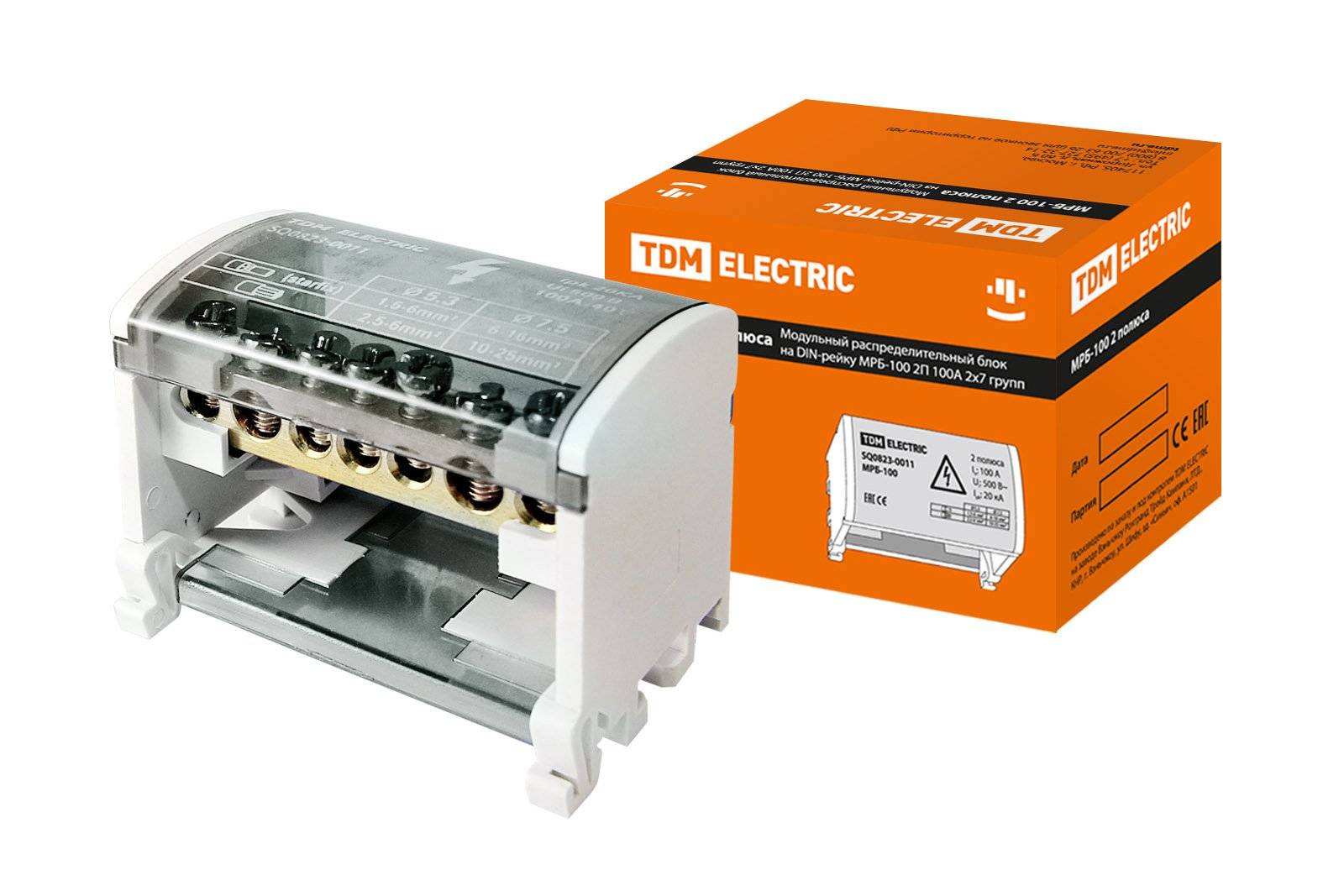 Модульный распределительный блок TDM МРБ-100 2P 100 А