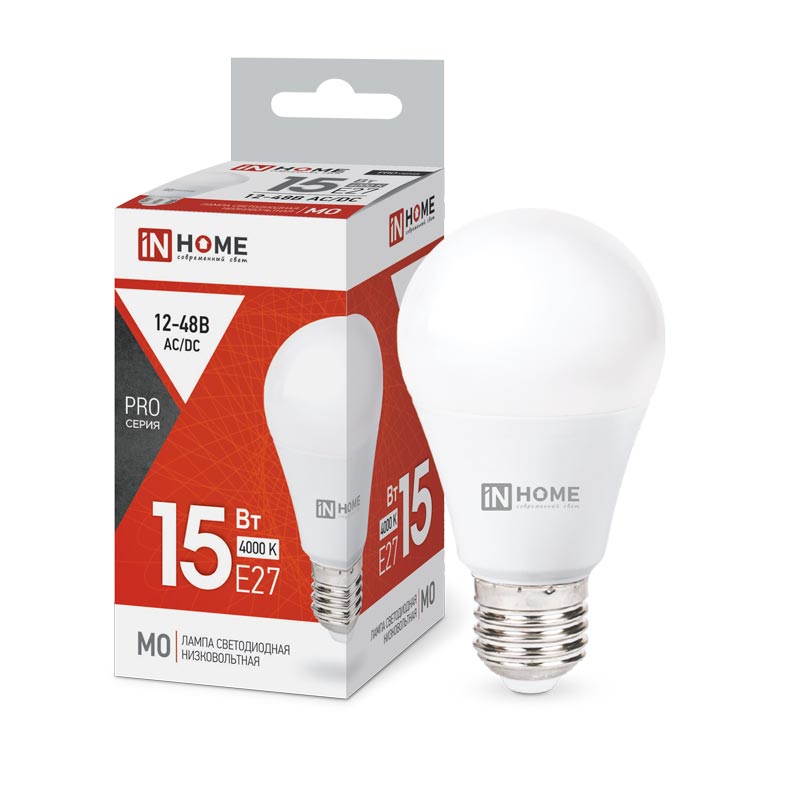 Лампа LED IN HOME МО A60 15W/E27/4000K груша 4690612036182
