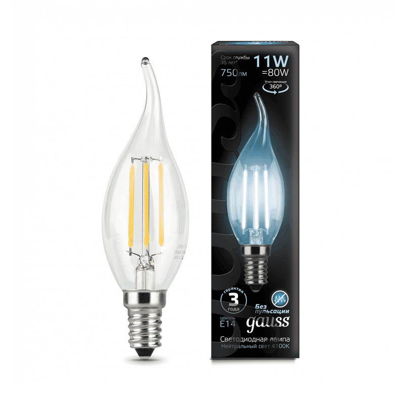 Лампа LED GAUSS Filament 13W/E14/4100K свеча на ветру 104801213
