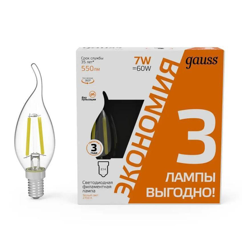 Лампа LED GAUSS Filament А70 22W/Е27/2700K груша 102902122