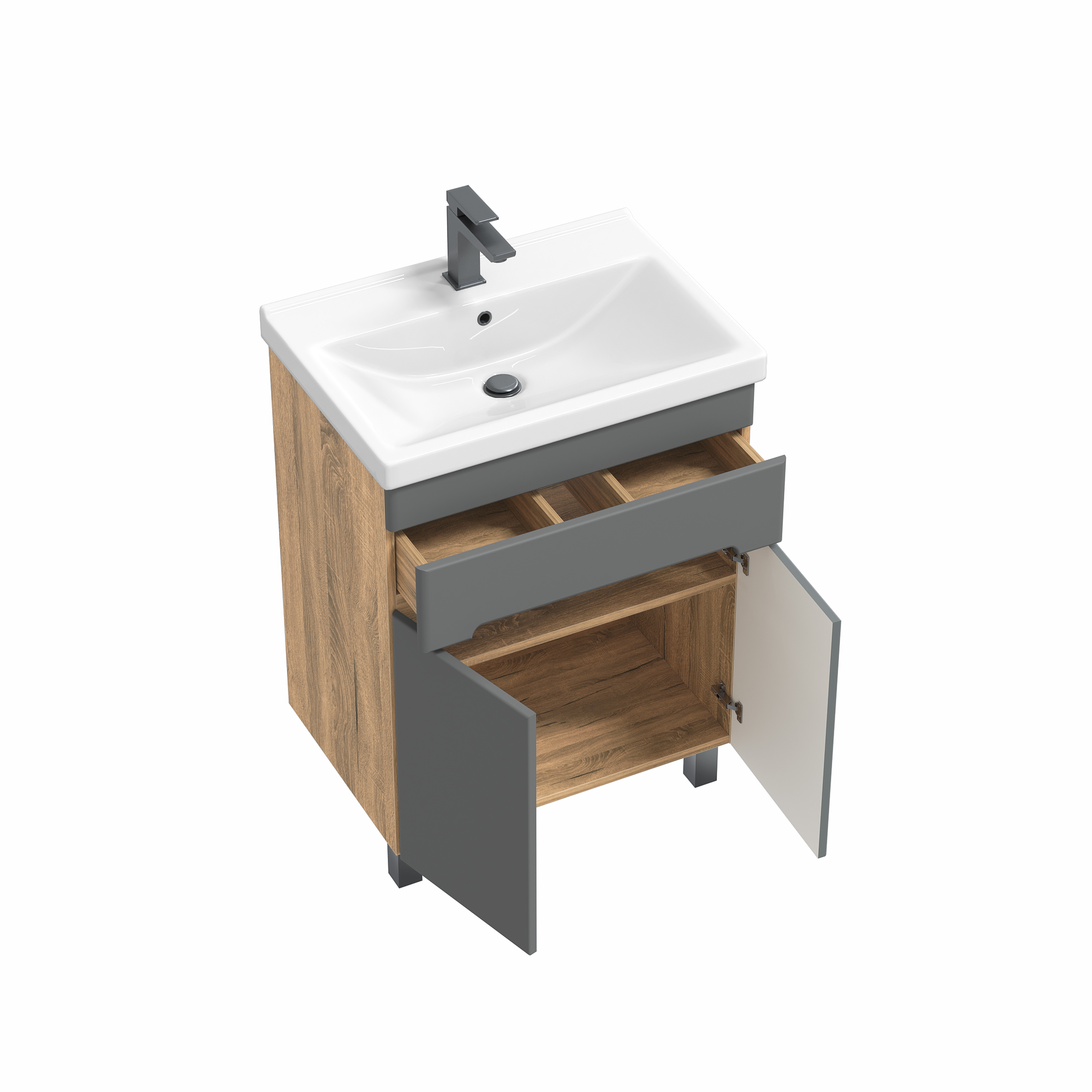 Купить Тумба с раковиной RUVANN Nika 60 графит, как и аналоги из категории Тумбы с раковинами, комплекты мебели можно онлайн в магазине АПЕЛЬСИН в группе Сантехника.