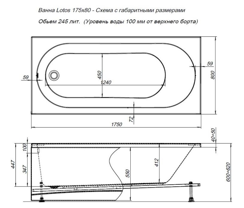 Ванна акриловая AQUANET Lotos 175*80 /каркас/