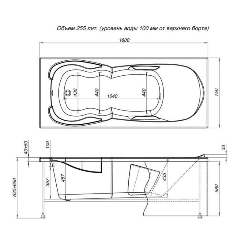 Ванна акриловая AQUANET Viola 180*75 см