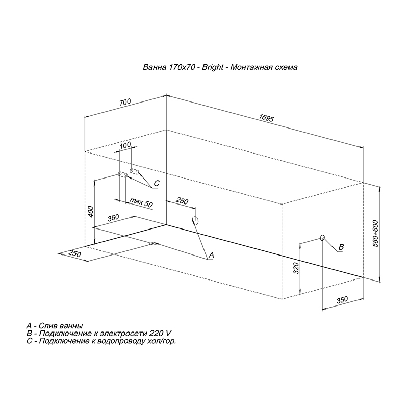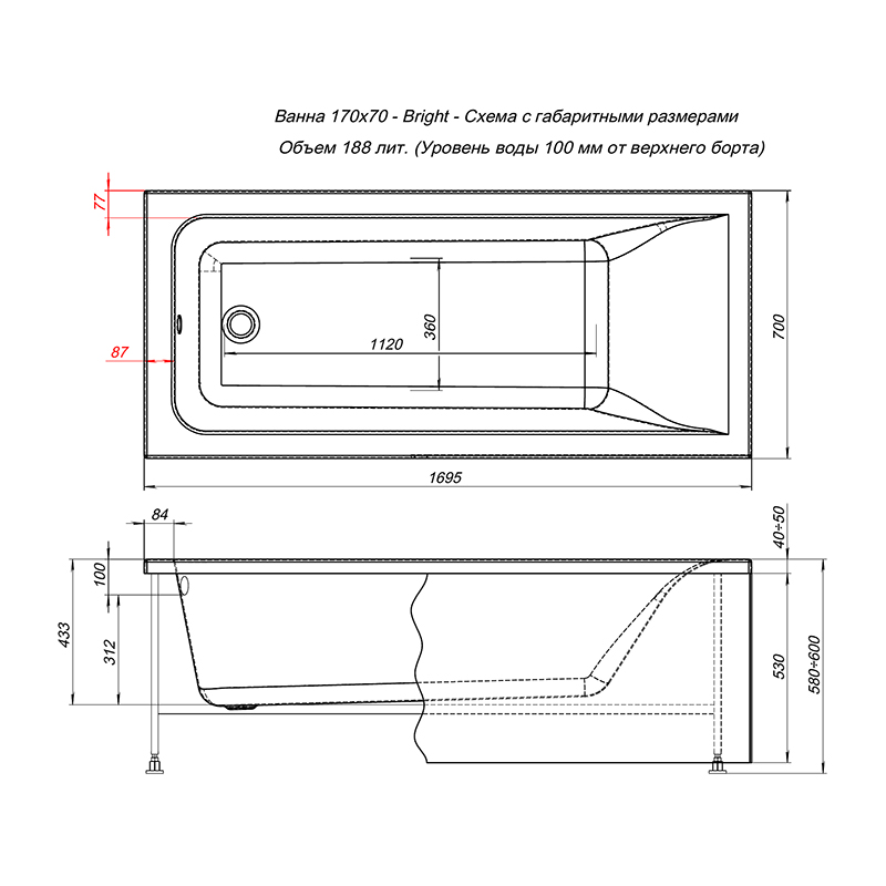 Ванна акриловая LOGAN Bright 170*70 см