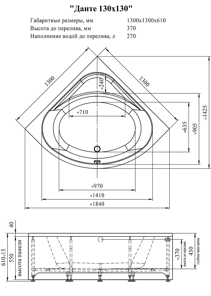 В каталоге АПЕЛЬСИН также представлена комплектация к товарам группы: Ванны акриловые . Сравнить характеристики можно самостоятельно, либо получить консультацию специалиста по телефону. Уточните наличие и закажите Ванна акриловая RADOMIR Данте 130*130 см с доставкой на адрес в удобное для вас время!