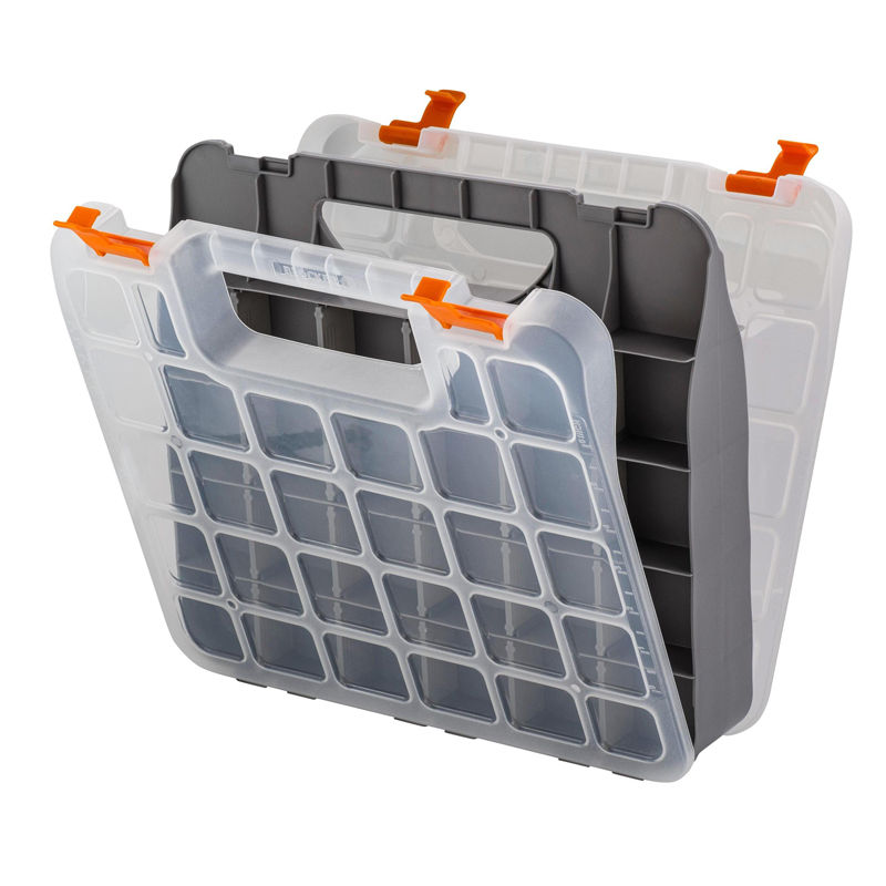 Переносные ящики и органайзеры оснащаются эргономичной ручкой. Доступ к инструментам может быть боковым, вертикальным, комбинированным. Отделения либо запираются на замки, либо защелкиваются специальными клипсами.