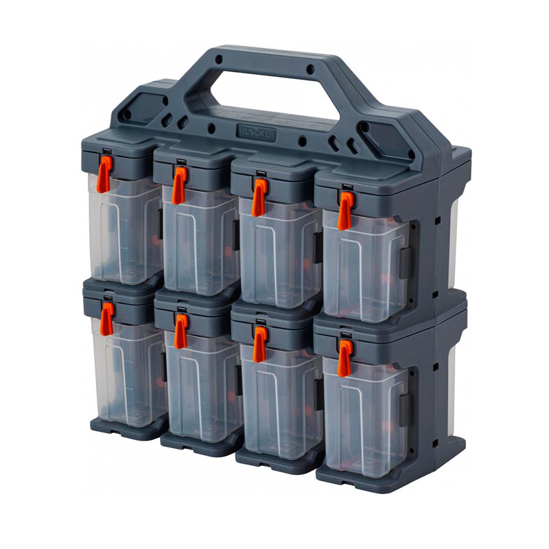 Органайзеры, специальные полки, боксы и ящики предназначены для систематизированного хранения инструментов, запасных частей, мелких деталей, крепежных элементов, расходных материалов. Емкости различаются габаритами, количеством и формой отделений, материалами изготовления (полипропилен, полиэтилен, металл). Выпускаются стационарные и переносные модели изделия для хранения оснастки.